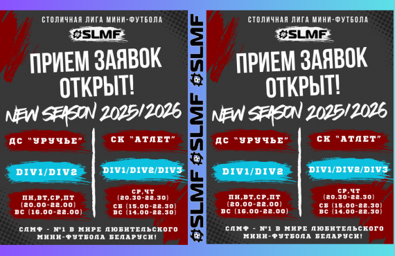 Не будем дальше томить ожиданием и объявляем РЕГИСТРАЦИЮ КОМАНД НА НОВЫЙ СЕЗОН SLMF 2025/2026 ОТКРЫТОЙ!Столичная лига мини-футбола - безусловно №1 в Беларуси...