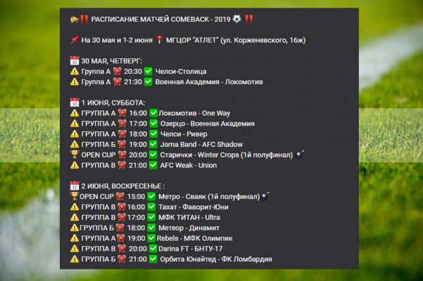 РАСПИСАНИЕ МАТЧЕЙ COMEBACK - 2019 на 30 мая и 1-2 июня