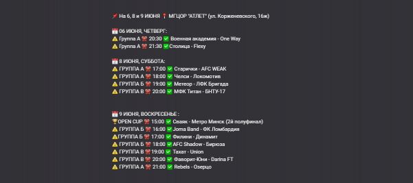 Расписание на 6, 8, 9 июня
